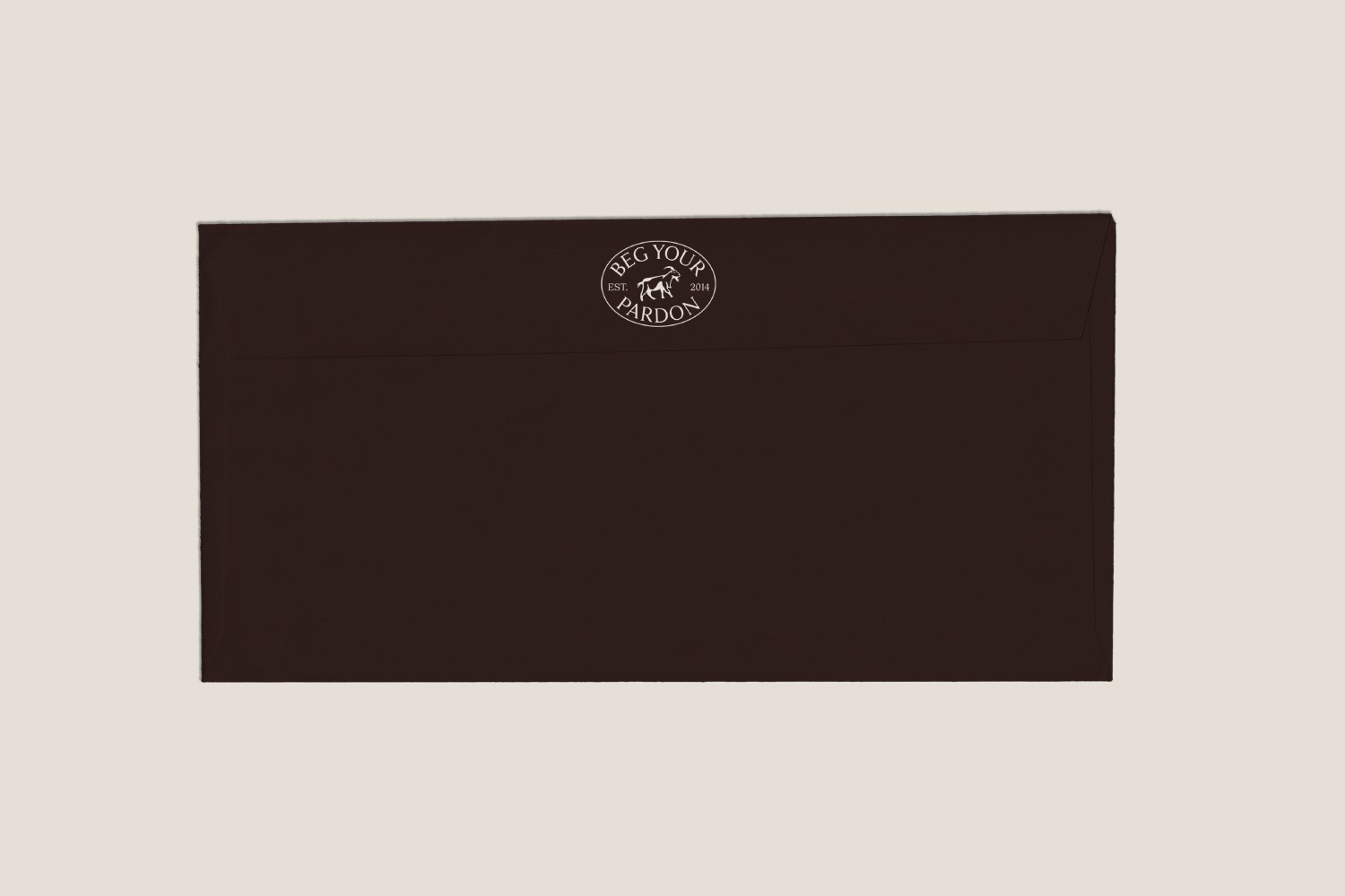 The primary logo pays homage to legacy fabric mills through the form of a heritage mark. These are often seen in suit jackets using premium materials, with the mark reinforcing Beg Your Pardon’s commitment to refined craftmanship and tradition. The brand name wraps around the badge and positions the cashmere brandmark at the centre, also reflecting BYP’s commitment to quality wool and garment production. The identity is supported by a BYP monogram nested in a linework crest that is referenced on garment labels, and a dark brown and warm grey primary colour scheme, creating a traditional, though elegant feel across print and packaging material.